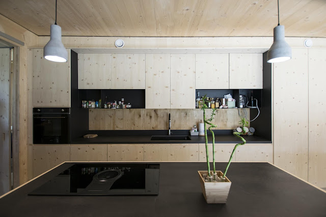budget. In quest’ottica la platea sarà il pavimento in calcestruzzo, le pareti in XLAM scalderanno gli ambienti interni con le molteplici tonalità dell’Abete ed il rivestimento in larice esterno, varierà con il passare delle stagioni.